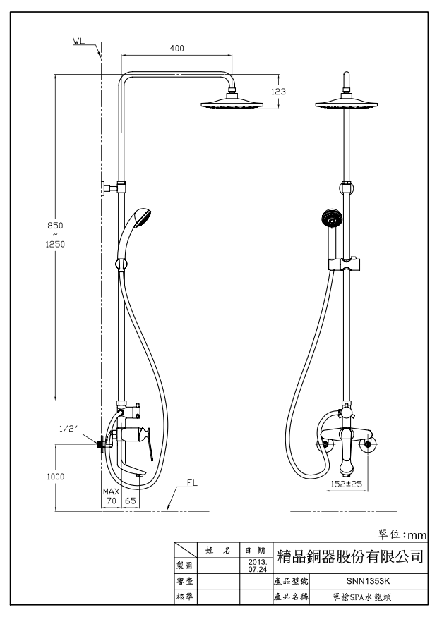 - Tên sản phẩm: Sen tắm cây nóng lạnh SNN 1353K